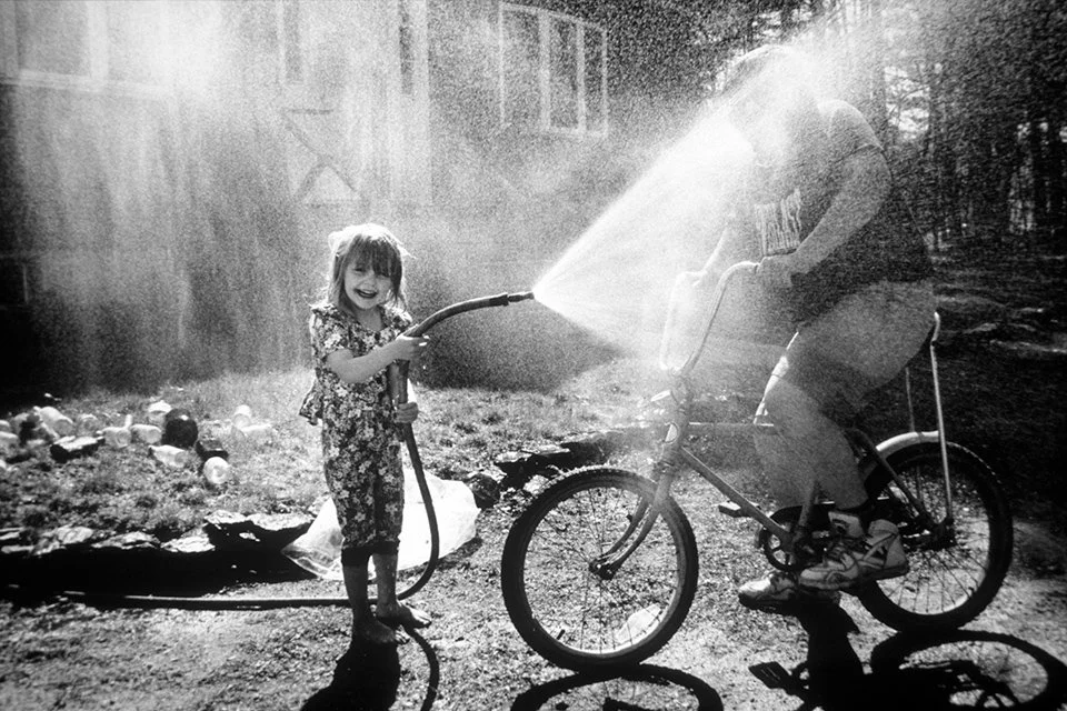 Melonie Bennett, Monique Instigating a water fight, From the Holy Cow Monograph, 1990 -2011, Silver print, 13 x 19 inches, $2000. Pre order- Gost Books,